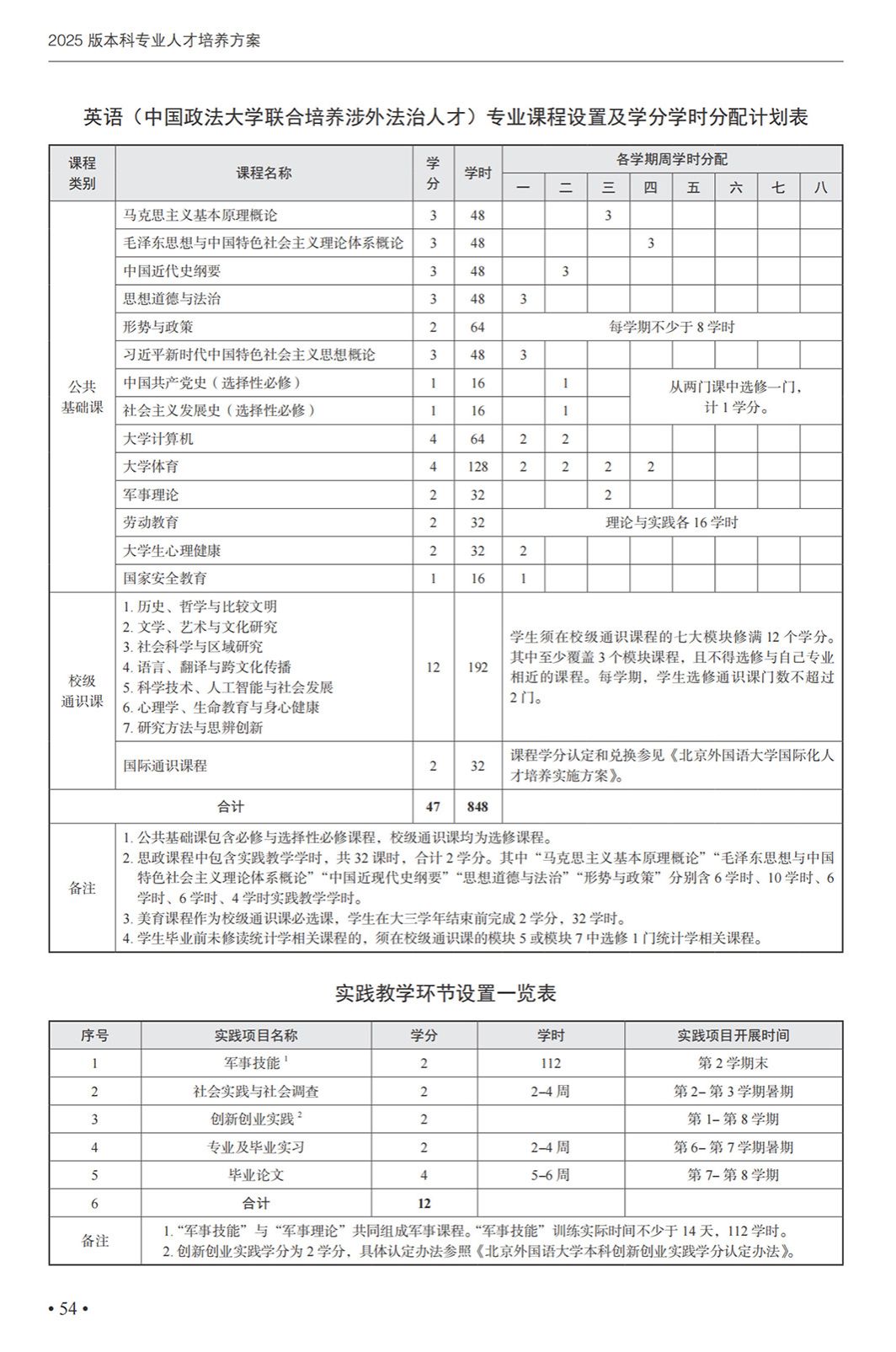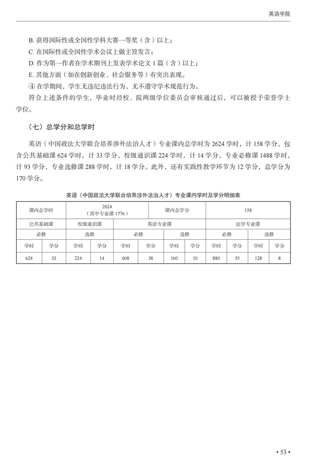 英语(中国政法大学联合培养涉外法治人才)专业本科培养方案(2025)