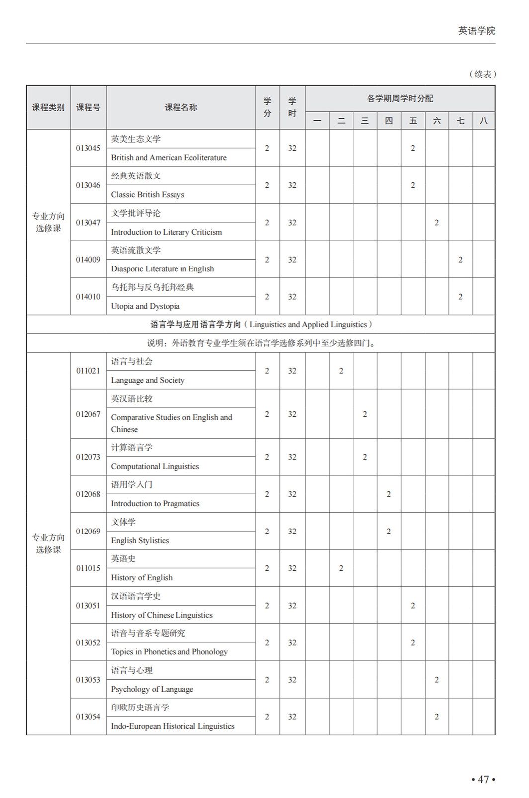 英语(外语教育)专业本科培养方案(2025)