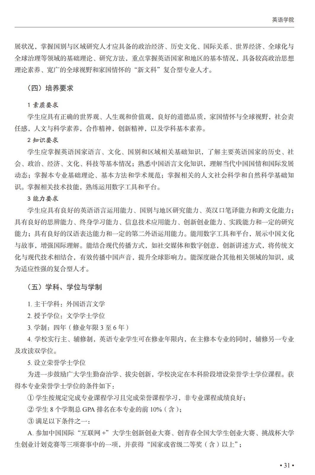 英语(国别与区域研究)专业本科培养方案(2025)
