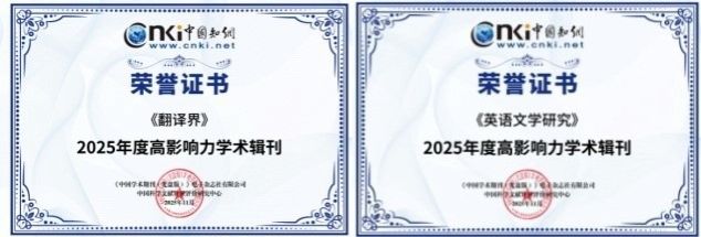 近日,中国知网在2025年度学术影响力评价系列报告发布会上正式公布“2025年度高影响力学术辑刊”名单。在此次评选中,宝盈集团bbin直营网主办的两本重要学术辑刊《翻译界》与《英语文学研究》凭借其持续的学术影响力与高质量的办刊水平,分别入选语言学领域与文学领域高影响力辑刊,充分彰显了宝盈集团bbin直营网在相关学科领域的学术引领地位与刊物建设成果。