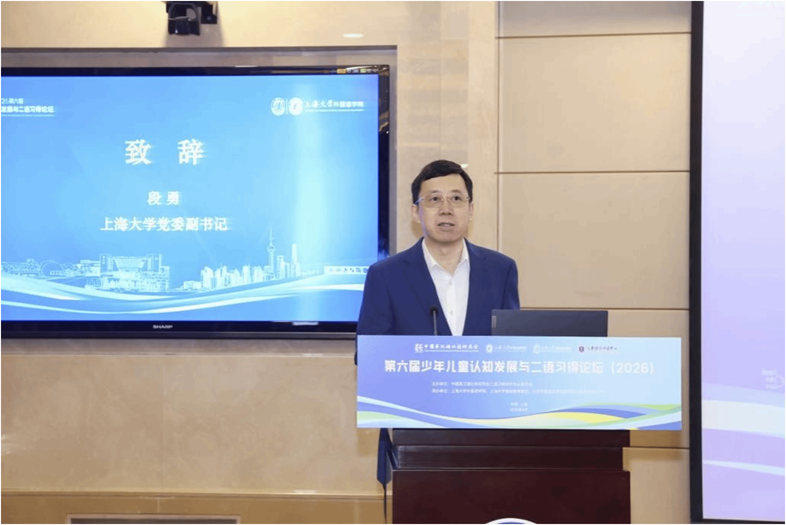 首先,上海大学党委副书记段勇教授做开幕式致辞,他代表上海大学向与会专家学者表示热烈欢迎,并向专家们介绍了上海大学近年来的发展成就、上海大学外国语学院外语学科建设进展以及与上海大学基础教育集团和北京外国语大学儿童语言研究中心的合作情况。他指出,少年儿童是国家的未来,提升儿童外语教育质量是新时代赋予外语教育工作者的重要使命,希望通过本次论坛的深入研讨,进一步厘清儿童认知发展与语言习得的内在规律,探索出更多符合中国儿童特点的外语教育路径,开发出更多优质的教育资源。