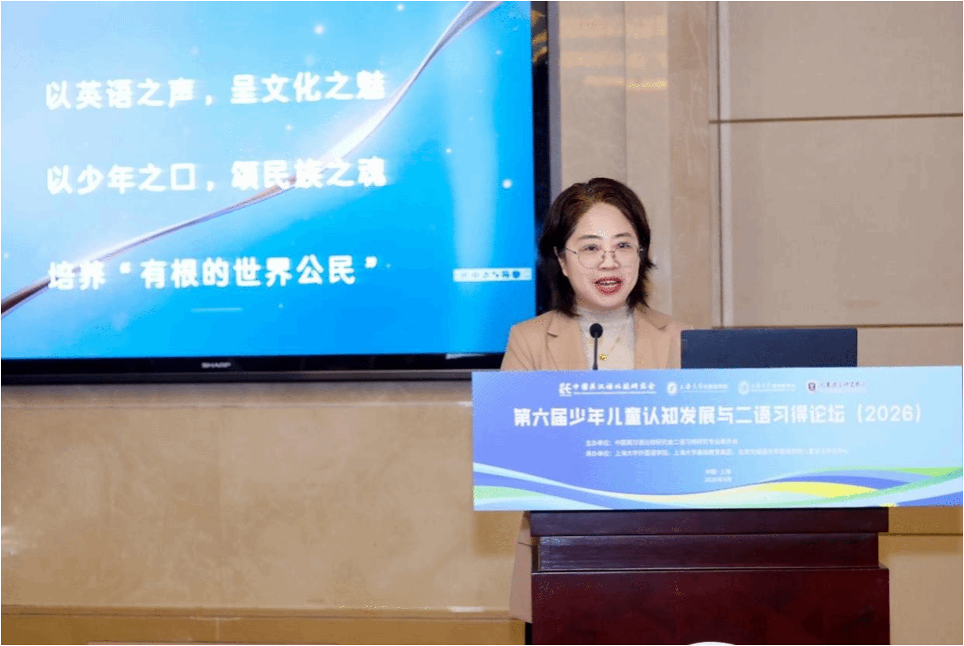 来自上海大学附属小学的顾美华老师介绍了上海大学基础教育集团小学外语节项目化育人的“附小范式”,并表示,未来将持续深化外语项目,进一步培养更多中国文化的传承者与中国声音的传播者。