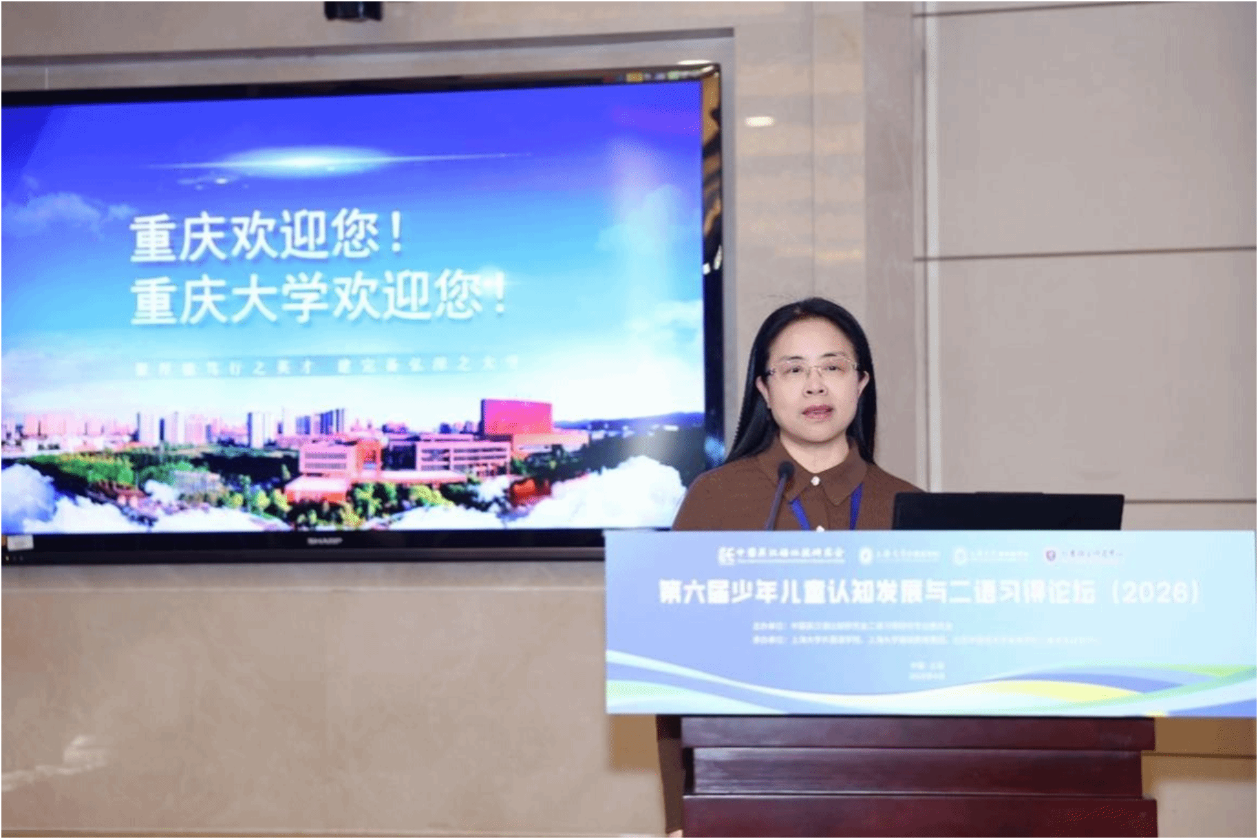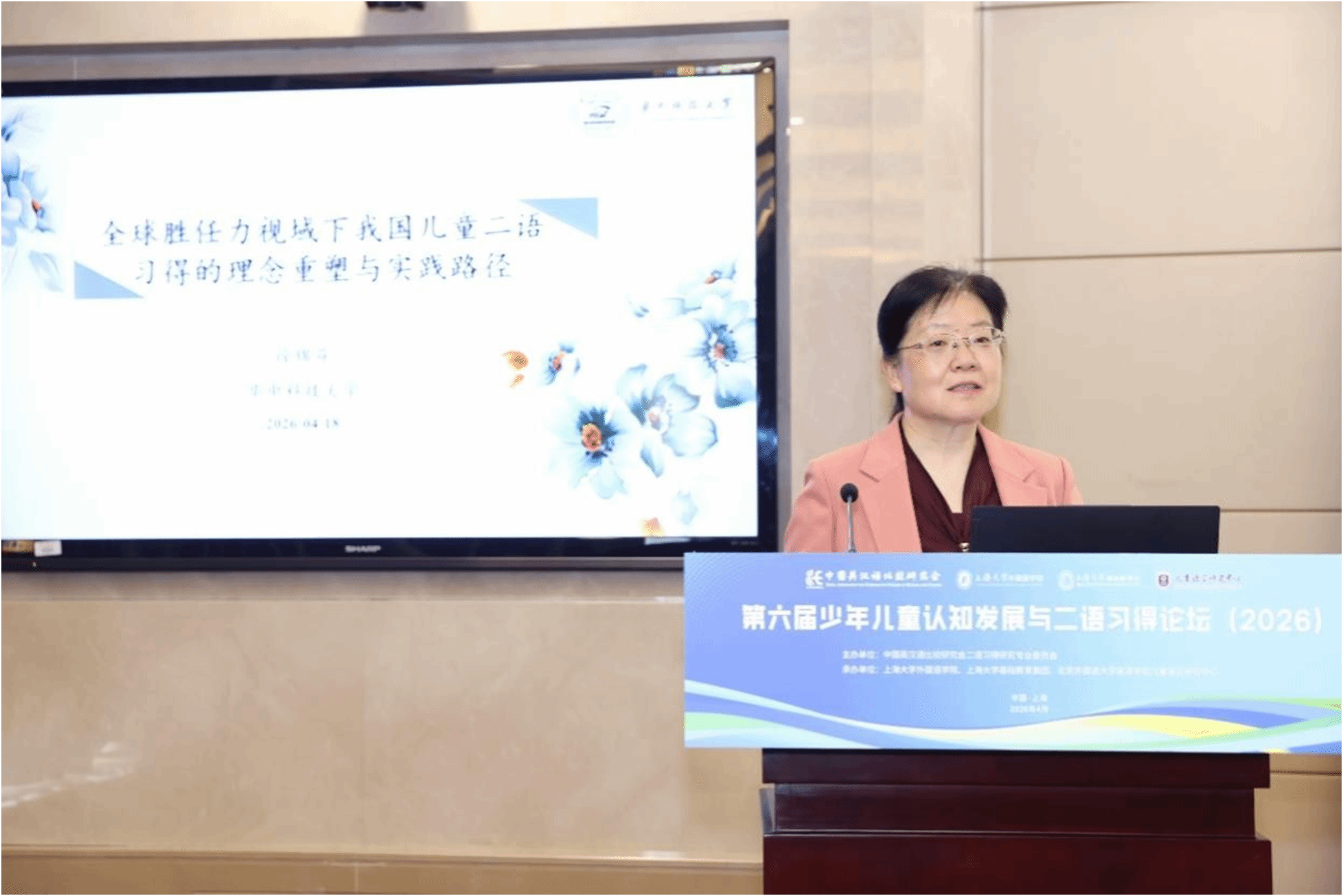 中国英汉语比较研究会二语习得研究专业委员会主任委员、华中科技大学徐锦芬教授在致辞中首先代表主办方对上海大学外国语学院表示感谢,她指出,当前儿童二语习得研究应聚焦认知发展规律、外语学科素养及人工智能技术应用等方向。外语基础教育中的教育公平、教师专业发展瓶颈、技术融合与数字化转型仍面临重要挑战。她呼吁与会学者共同努力,携手书写儿童二语习得的新篇章。