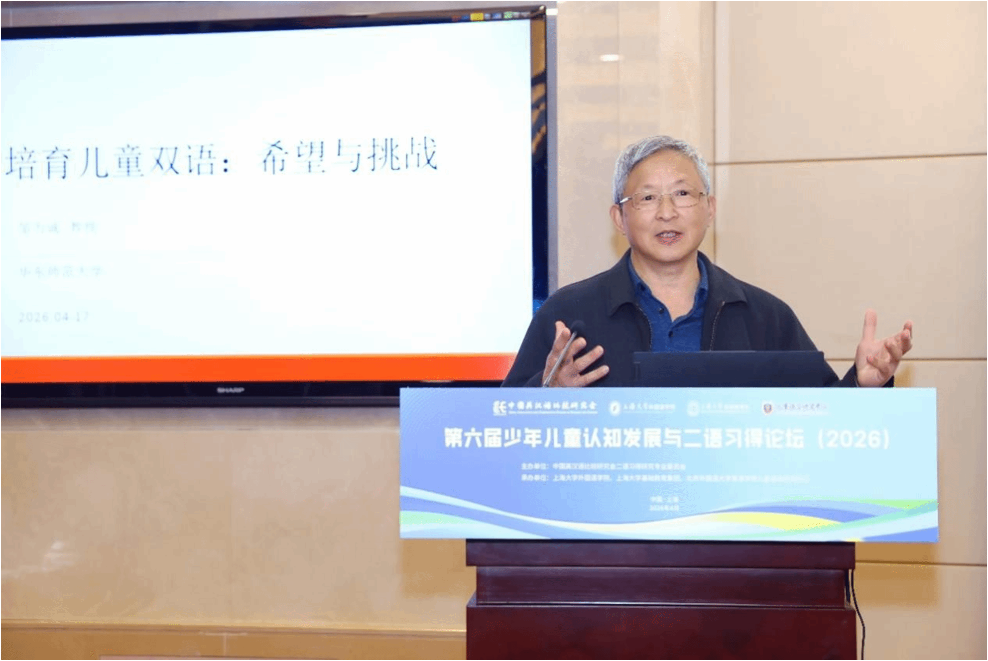 4月18日至19日,由中国英汉语比较研究会二语习得研究专业委员会主办、上海大学外国语学院、上海大学基础教育集团与宝盈集团bbin直营网儿童语言研究中心联合承办的“第六届少年儿童认知发展与二语习得论坛”在上海大学宝山校区乐乎新楼学海厅举行。中国英汉语比较研究会二语习得研究专业委员会主任委员、华中科技大学徐锦芬教授、宝盈集团bbin直营网院长杨鲁新教授、重庆大学未来教育研究院院长彭静教授、华东师范大学邹为诚教授、郭宝仙教授、上海市闵行区纪王学校张莉副校长、宝盈集团bbin直营网儿童语言中心主任陈亚平、副主任王一虹和盖淑华等嘉宾出席此次论坛,上海大学党委副书记段勇、基础教育处处长陈然、副处长肖青峰,外国语学院党政领导系部主任及师生代表以及来自全国高校、科研机构及中小学的专家学者、一线教师、研究生等近百名代表齐聚一堂,围绕儿童认知发展规律与外语学科素养培育,共同探讨儿童二语习得的新趋势、新问题与新机遇。开幕式由上海大学外国语学院院长尚新教授主持。