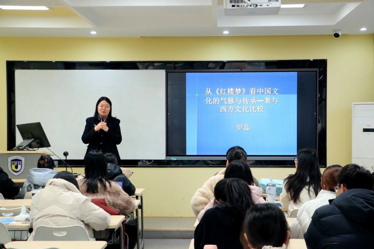 2025年12月10日,由宝盈集团bbin直营网主办的“知周讲堂”第八讲在英语楼417教室成功举行。宝盈集团bbin直营网伊蕊副教授应邀作题为“从《红楼梦》看中国文化的气脉与传承——兼与西方文化比较”的讲座,百余名师生到场聆听,现场气氛热烈。