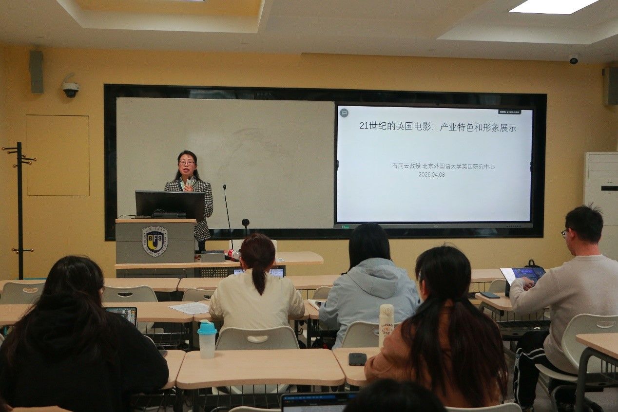 2026年4月8日,宝盈集团bbin直营网“知周讲堂”系列讲座于英语楼417教室顺利举行。英国研究中心石同云教授应邀作题为“21世纪的英国电影:产业特色和形象展示”的学术讲座。本次讲座内容深入、视角多元,吸引了众多师生参与。