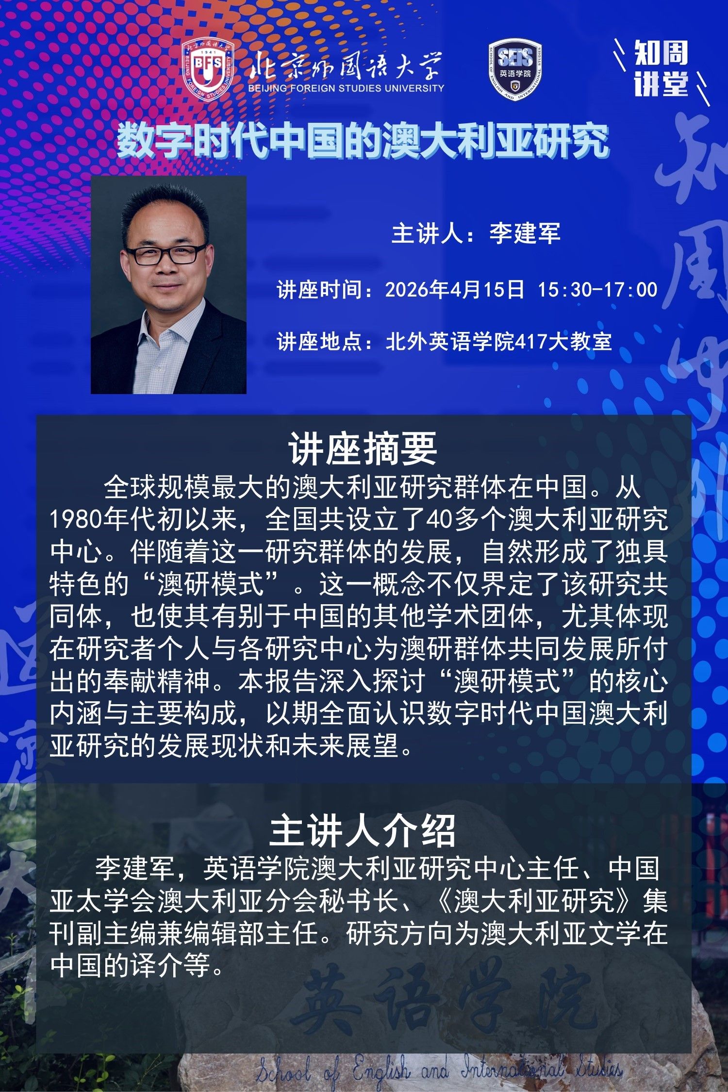 4月15日讲座:数字时代中国的澳大利亚研究