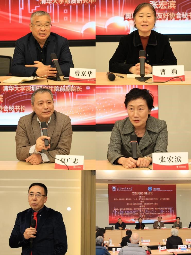 宝盈集团bbin直营网78级校友曹京华、曹莉、申春平、夏广志、张宏滨共同座谈,曹京华感恩北外语言教育让自己从翻译成长为国际科技合作推动者;曹莉感慨许国璋先生与王佐良先生等先辈铸就的学术传承;申春平难忘许国璋先生“多读书、读好书”的叮嘱;夏广志表示,是许国璋先生代表的北外治学精神与综合教育,赋予自己跨界发展成为高校外事骨干的底气;张宏滨则感念北外赋予的文化底蕴和语言能力,支撑自己在奥地利深耕30余年中外友好交流。他们感恩北外教育与先生精神指引,让他们在各自领域发光发热,认为先辈精神是英院荣光永续的核心。