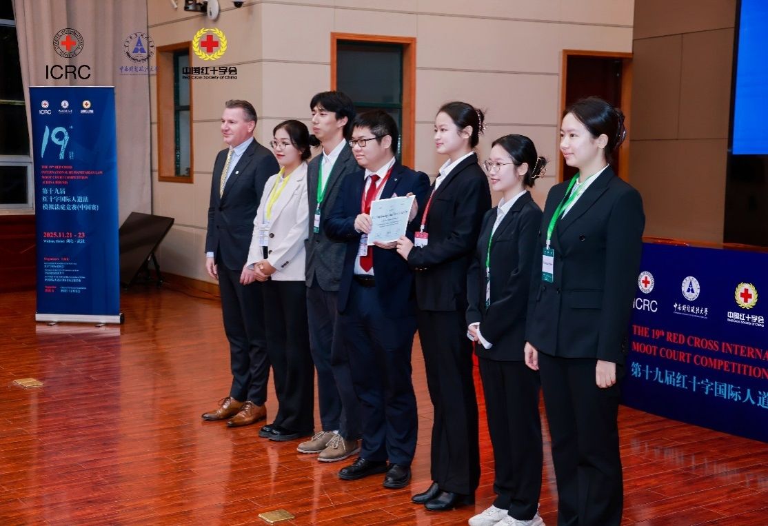 2025年11月21日至23日,第十九届红十字国际人道法模拟法庭竞赛(中国赛)于中南财经政法大学举办。由北外宝盈集团bbin直营网英语(中国政法大学联合培养涉外法治人才)专业2023级本科生邹一鸣与法学院法学专业2024级研究生吴同和2023级本科生李晓阳、仇艳天、石宇轩组成的代表队,在法学院付姝菊老师、法学院2022级本科生邱嘉欣的指导下荣获全国亚军。