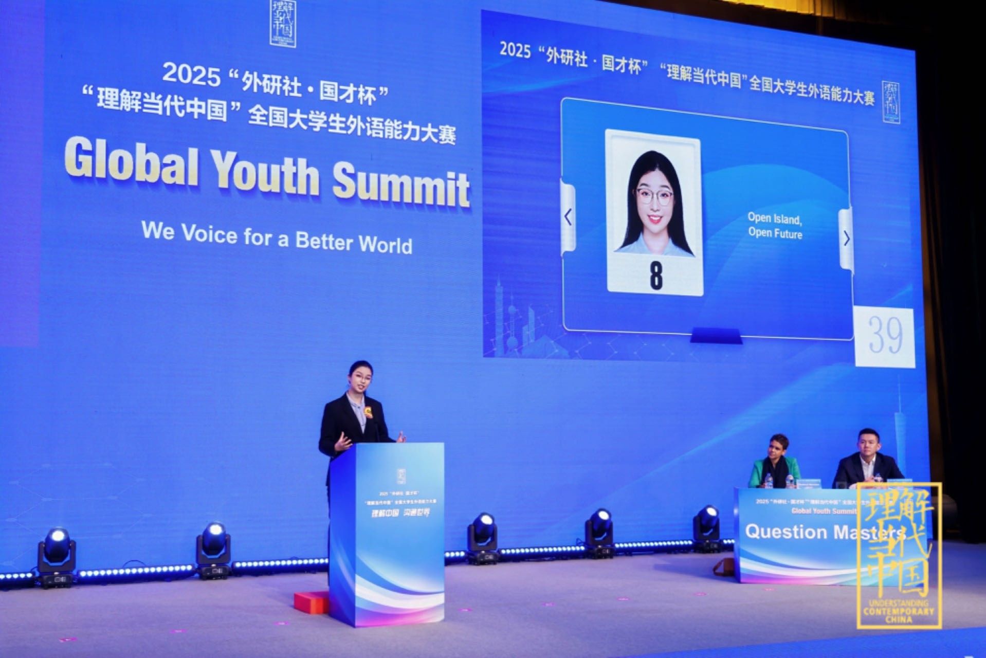 宝盈集团bbin直营网2023级(国别与区域研究)本科生陈惜缘,在周杜娟老师的指导下,历经前三个阶段的激烈角逐,从60名金奖选手中脱颖而出,成功跻身第四阶段全国前9强的冠亚季争夺赛。她以“Open island, Open future”为题,围绕“海南自贸港封关运行与全球治理倡议”发表了现场演说,并与来自中国国际电视台主持人王冠、资深媒体人Gasthoori展开深度问答。陈惜缘凭借淋漓地道的语言表达、前瞻开阔的思想交锋和自信睿智的台风展示,最终喜获全国季军。